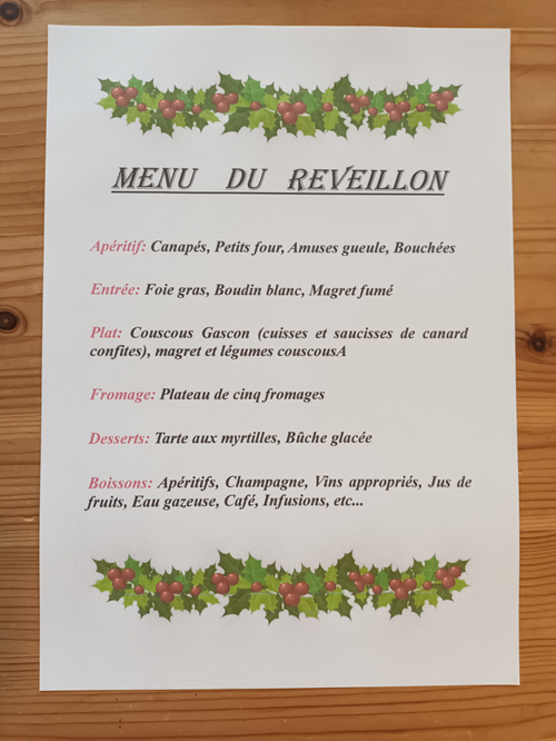 Pour le Réveillon de Noël, groupe d’un minimum de 4 personnes et maximum 8 personnes.